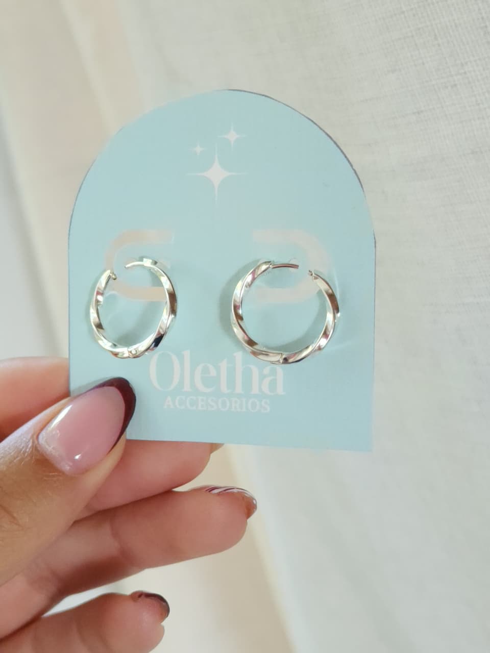 Aros argolla acero blanco, torzadas finas.