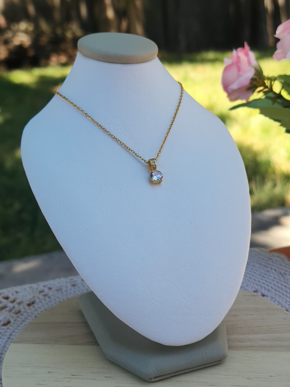 Collar acero dorado, con dije estilo punto de luz, encarce con cristales.