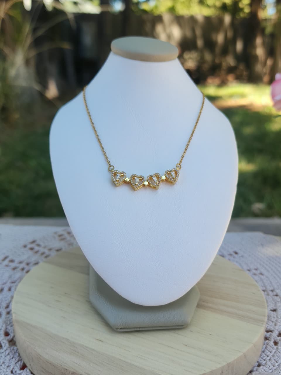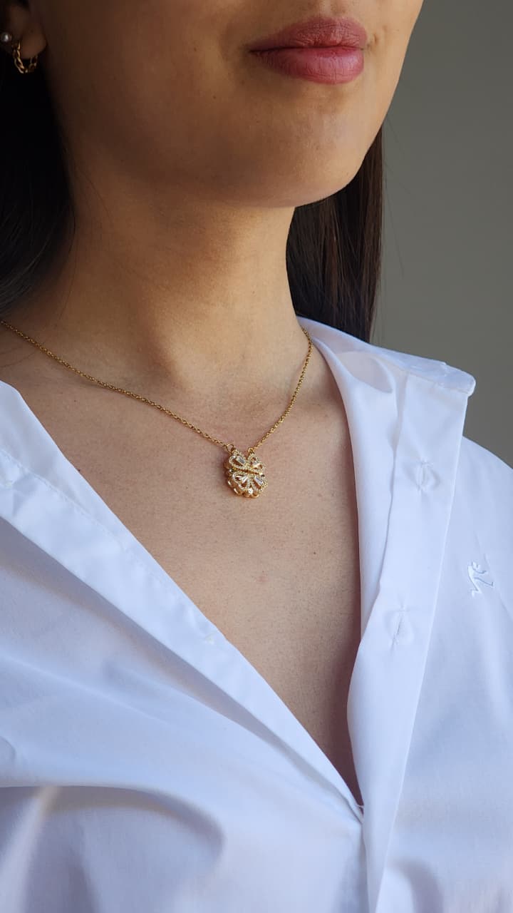 Collar acero dorado, dije trebol imantado.