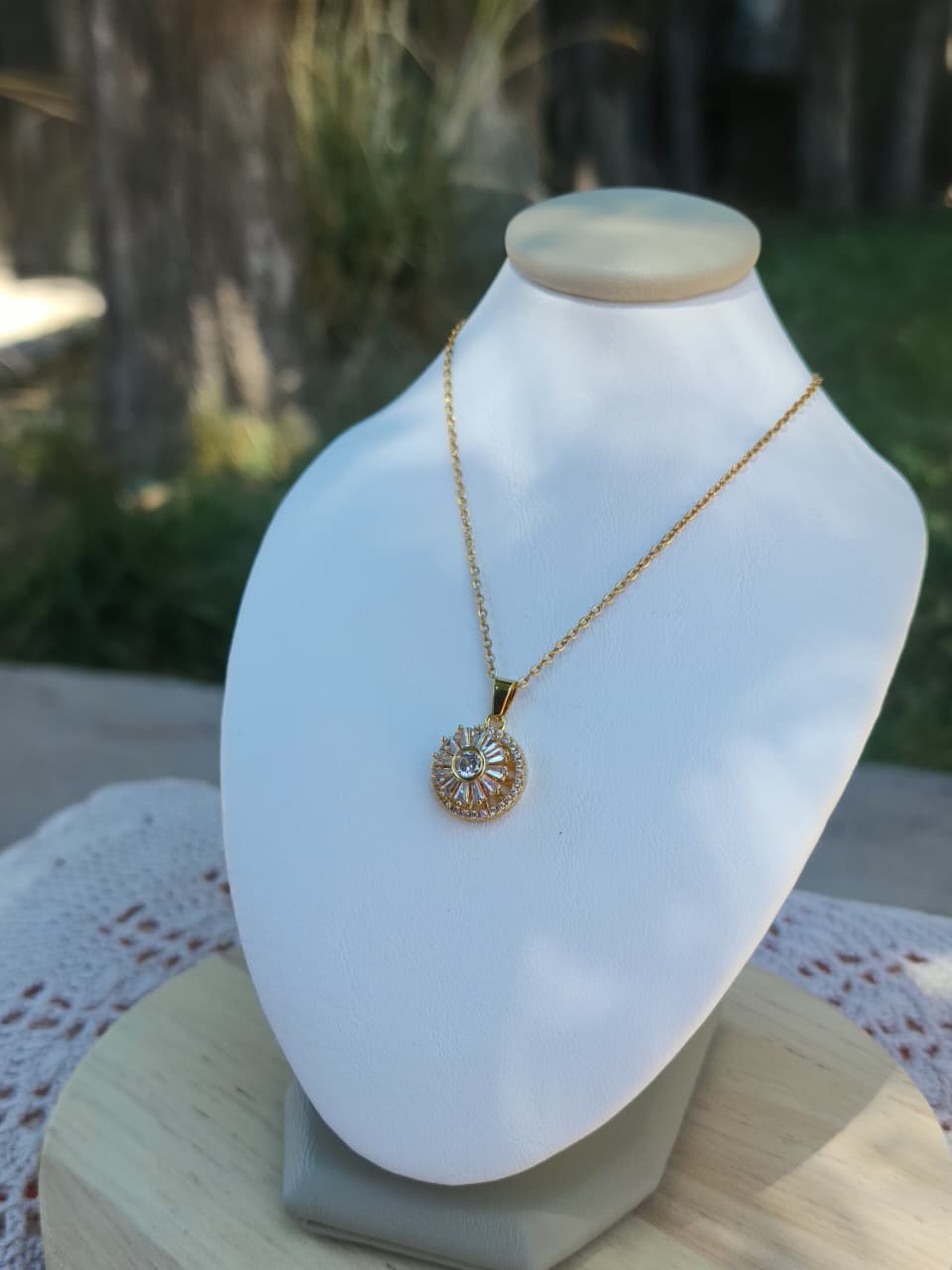 Collar acero dorado, dije flor giratoria.