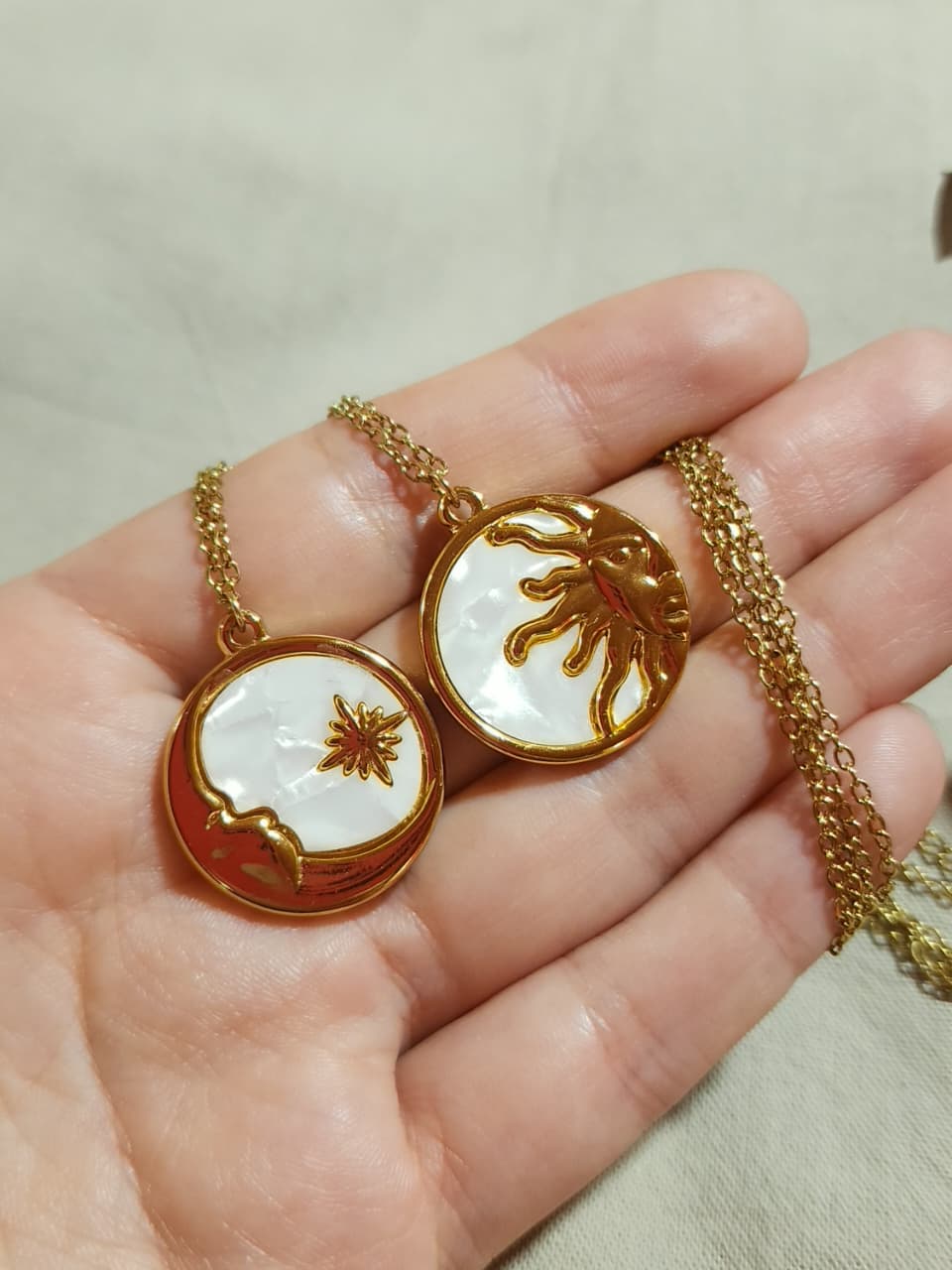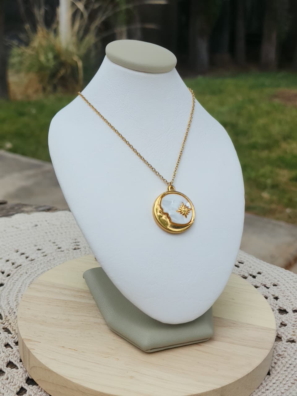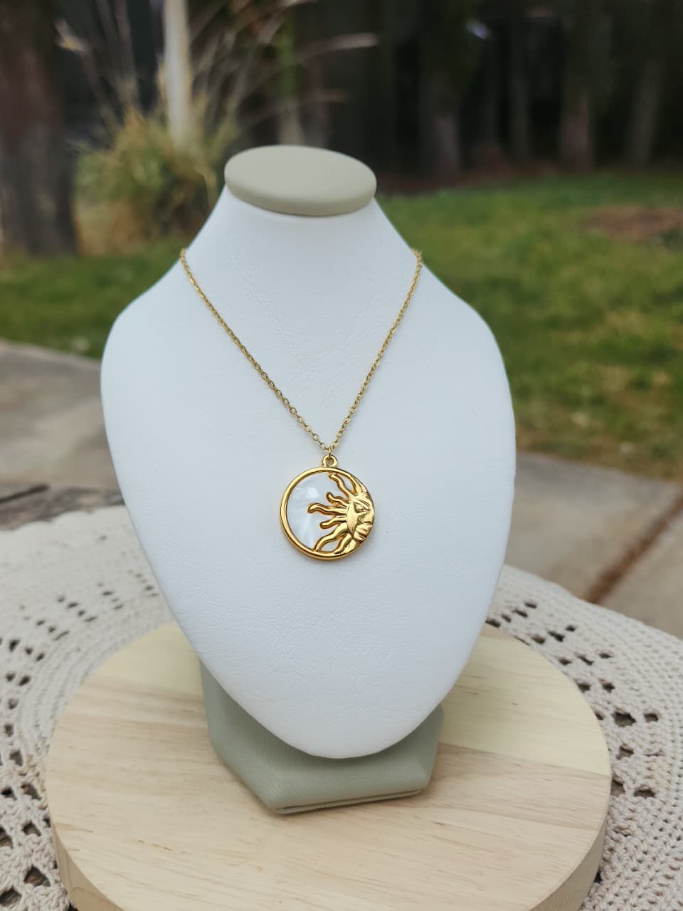 Collar acero dorado, dije sol y luna.