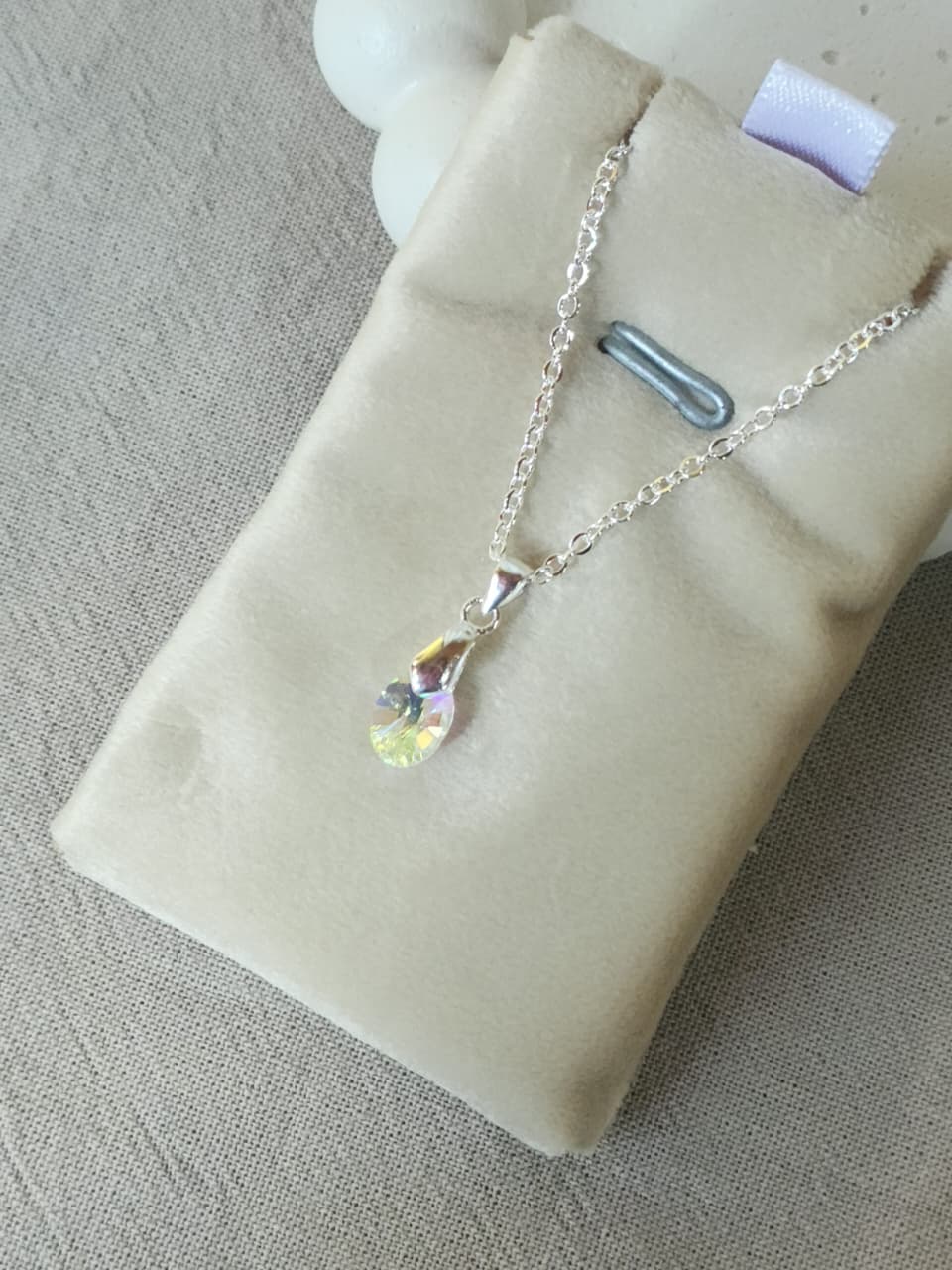 Collar acero blanco, dije gota tornasolado.