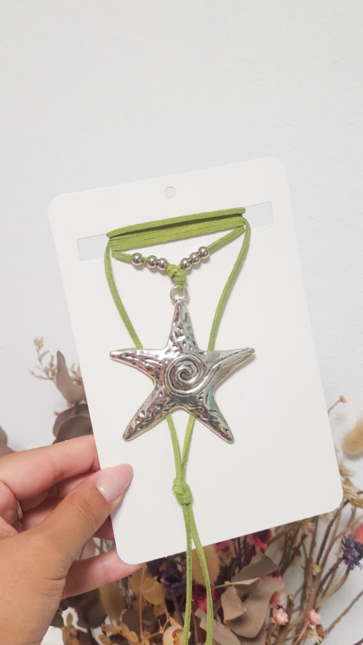 Collar de gamuza, con dije estrella de mar