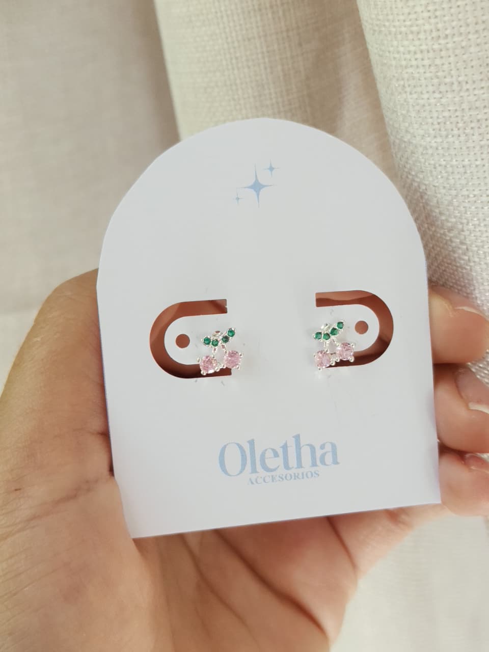 Aros pasantes acero blanco, naranja con cristales y cereza con cristales rosa