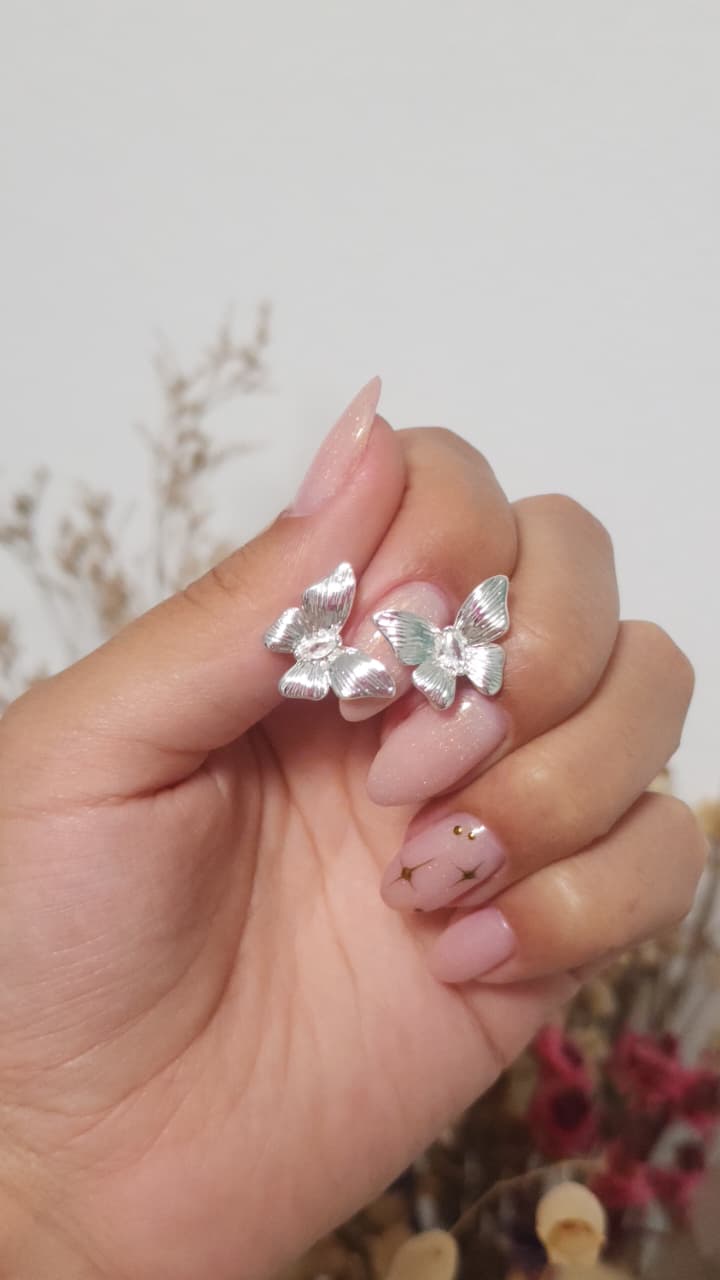 Aros pasantes, mariposa con cristal.