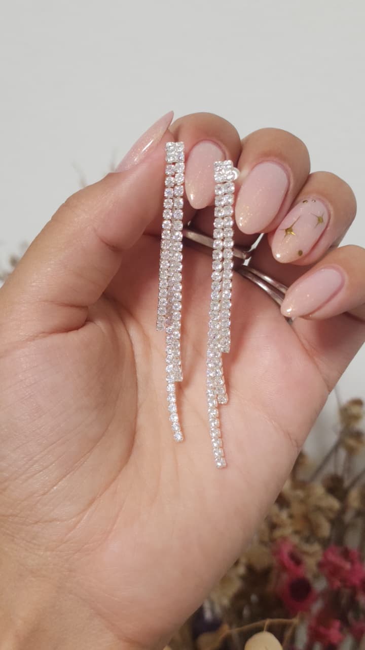 Aros pasantes de fiesta, con dos tiras adelante y una atras, cristales.