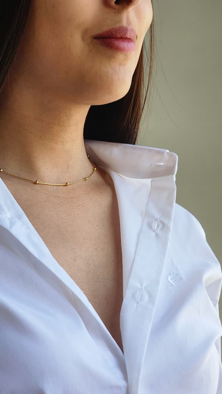 Cadena acero dorado, con bolitas intercaladas.