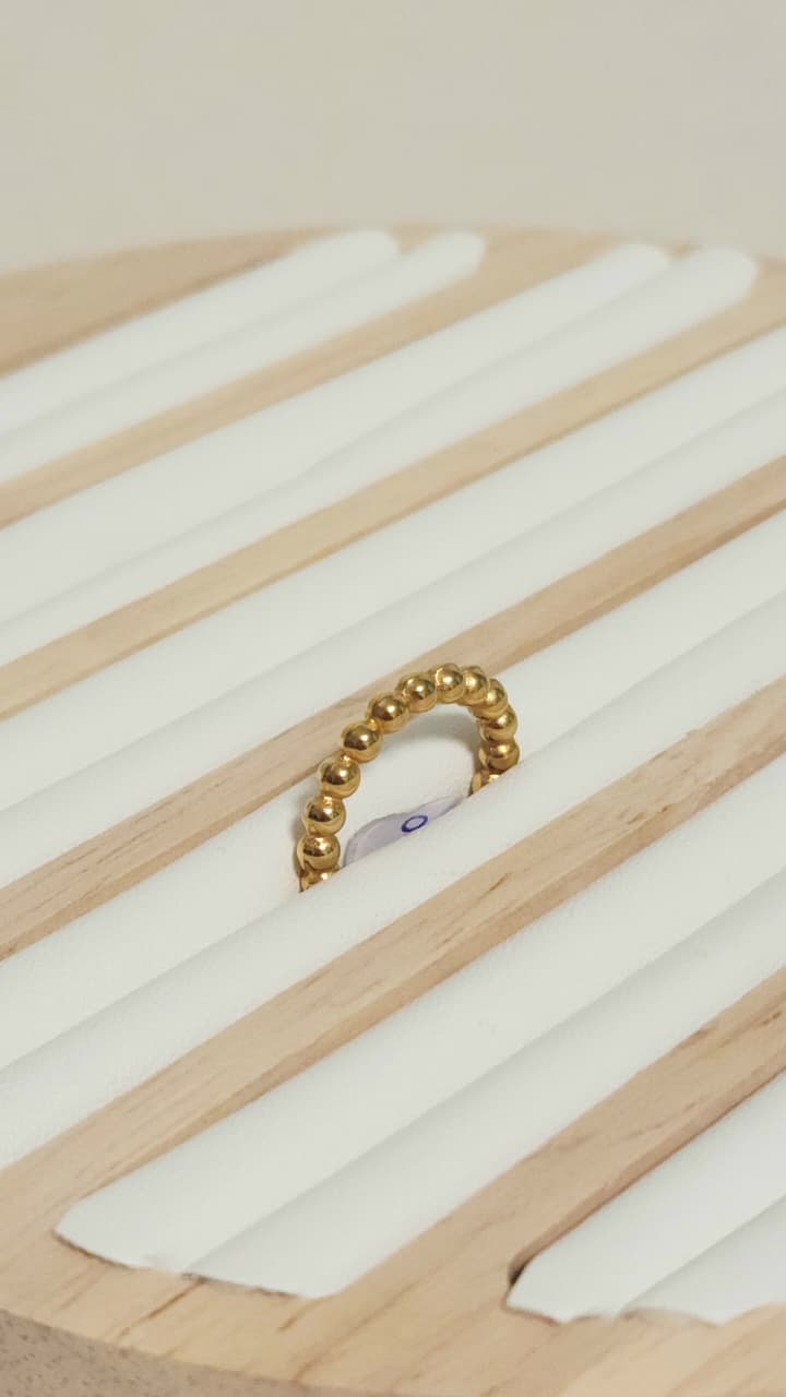 Anillo acero dorado, bolitas continuas.