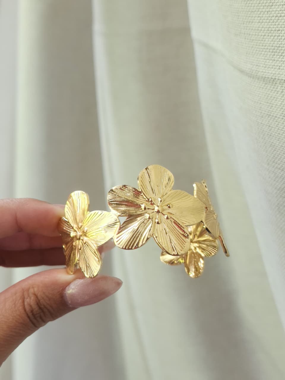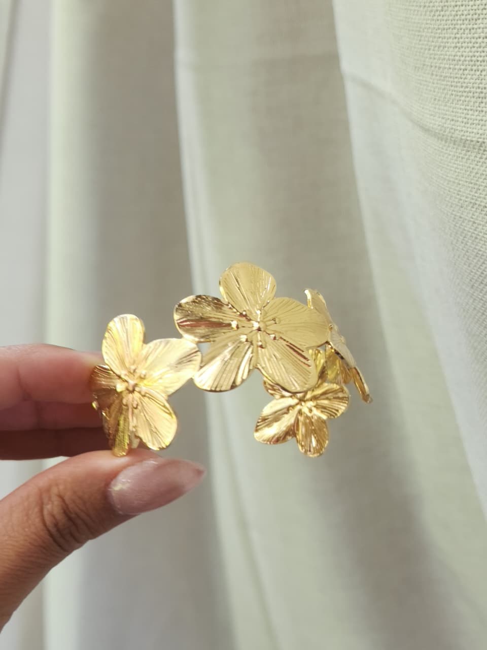 Pulsera aleación, flores anchas labradas, para muñeca.