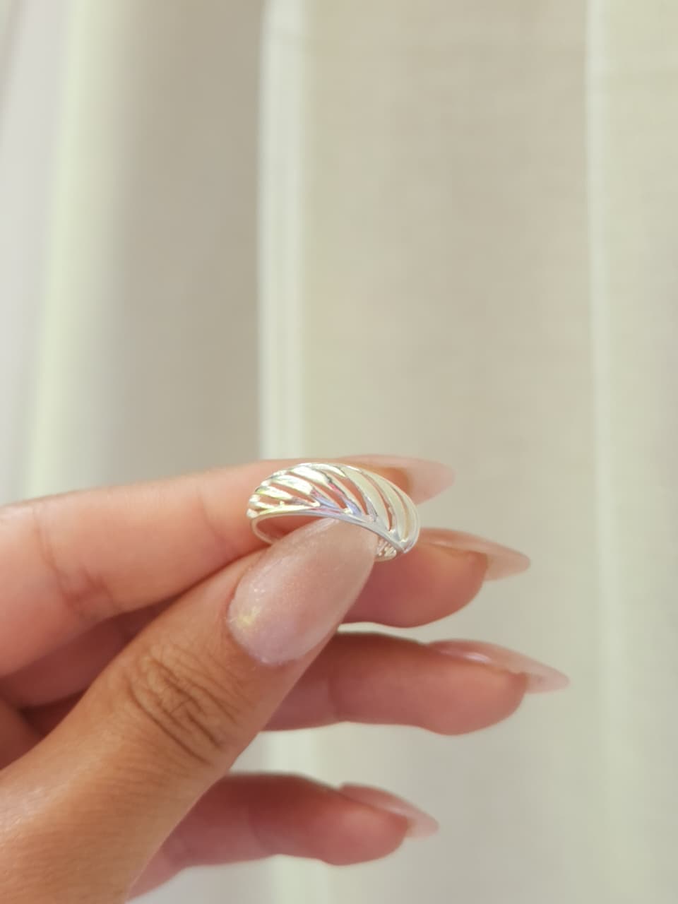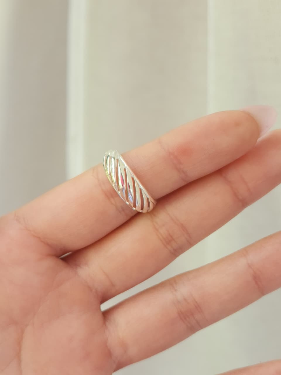 Anillo plata 925, bombe con lineas caladas.